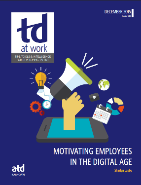 If you’re not familiar with TD at Work, it’s a subscription service that offers practical guides on talent development. The guides are short, filled with practical information and job aids. If you want to get a sense of what a TD at Work looks like, you can take a look inside the one I just wrote on “Motivating Employees in the Digital Age” by visiting here.
