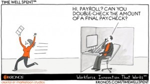 Today’s Time Well Spent from our friends at Kronos reminds us that money also doesn’t buy employee engagement. To me, this cartoon wasn’t about employee final paychecks. I’ve written about final paychecks before. You can see one of those posts here. This post wasn’t about the money. It was about disengagement and being free from the company.