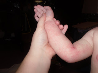 At six months old, I gave her the first jar of baby food sweet potatoes. It was her last of that particular food. Hives and rash within moments sent us rushing to our pediatrician who thankfully was only three minutes away from our house--much closer than the hospital 20 minutes away.
