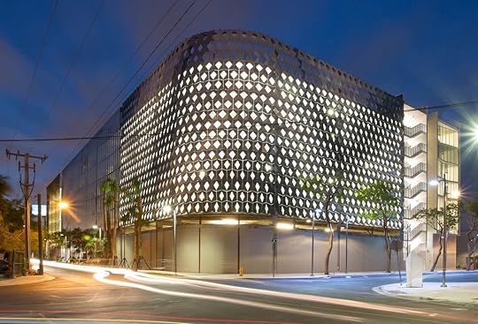 Much like architects in the days before air conditioning had to design Floridian buildings for ventilation, so did IwamotoScott Architects consider a pleasant cross breeze an integral part of design. Knowing Floridians like nothing less than getting into a hot car on a muggy day, the architects digitally created a large metal screen with folded aluminum apertures, letting in air from all directions while still providing shade.
