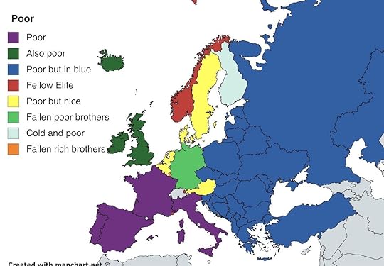 There are other amusing versions of the map, as well, like this “How a Swiss sees Europe” map, created by user throwawayi7685679. According to this Swiss citizen, pretty much all of Europe is classified as some version of “poor” except Norway, which is graciously acknowledged to be “fellow elite.” This particular map proves that your worldview truly is all about your point of reference.