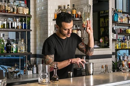 Ceresio 7 is a rooftop bar and restaurant located on top of a historic rationalist building in Milan built in the Fascist era. The interior design takes after the exterior with a rationalist ‘30s aesthetic characterized by clean, geometric shapes. There are rectangular, brass-topped booths, floor-to-ceiling windows, red lacquered tables, plush teal chairs, and suspended strip lighting. This bar menu features classic American cocktails with a “strongly Italian twist and identity” and house-made bitters.