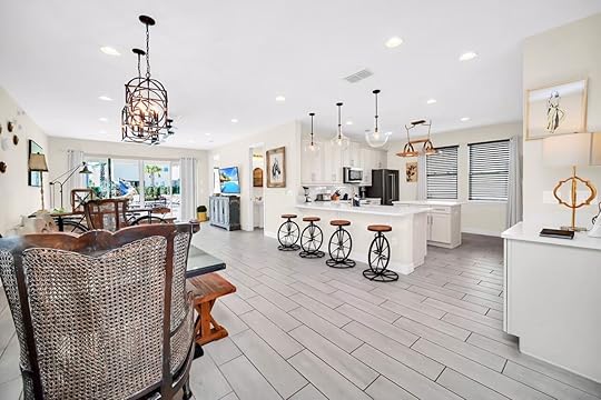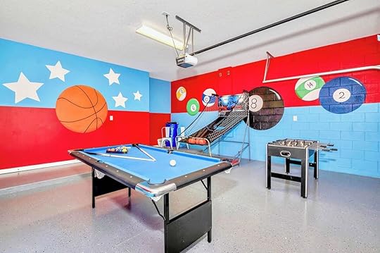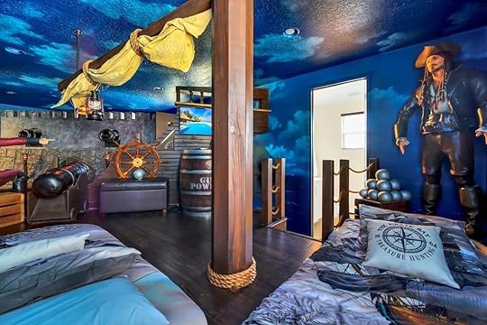 Designed for anyone who never wants to grow up, has a swashbuckling bedroom to rival the Pirates of the Caribbean ride. The rest of the home is elegantly appointed with heavy wooden moveables and antique collectibles. The pool has a slide, fountains, and splash pads to offset Florida’s baking-hot summers. Back inside, you’ll find a games room stocked with air hockey and ping pong.
