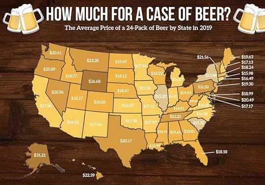 A quick look at the map gives you a pretty good idea of the disparity in cost. If you live in Alaska, you’ll be paying the most for a 24-pack at an average of $31.21. Illinois residents, however, pay nearly half that much at $15.20. California and New York, which both have reputations for being expensive, surprisingly came in at $17.86 and $15.48 for a case, respectively, with Wyoming ($26.68) and Hawaii ($22.39) following Alaska for most expensive.