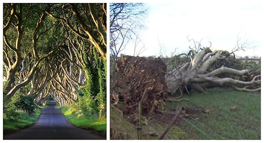 The Dark Hedges are a incredible beech tree tunnel on Bregagh Road in Ballymoney, Northern Ireland, that have become popular with tourists since being used as a filming location for Game of Thrones. 60 mph winds felled the tree on Saturday, though several of the other trees had been damaged in previous storms.