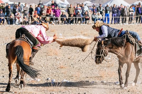Kokpar is a popular event where two horse riders grapple for possession of a decapitated goat carcass.