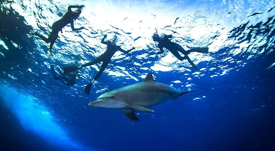 Floating face down in a Red Sea coral lagoon off the coast of Egypt, I watched five adult male dolphins tumbling about like a litter of puppies. Forty feet from me, they nipped each others’ noses, tugged on fins, and corkscrewed their sleek gray bodies around each other like acrobats. Barely fluttering my flippers, I was careful to follow the first rule of wild dolphin interaction: do not interfere.