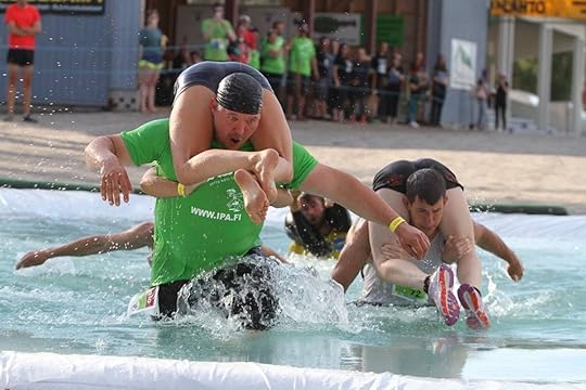 Admittedly, this is only one theory. Another is that Ronkainen has his thieves train by carrying heavy sacks on their backs. Whether from here or from the wife-stealing, the sport evolved and now, international rules state that each pair must get around a 253.5-metre track with two dry obstacles and one water obstacle as fast as possible. The winning pair, in most competitions, is rewarded with a cash prize and the woman’s weight in beer.