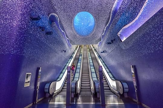 T-Centralen is the beating heart of Stockholm’s metro system. It’s where all three of the city’s metro lines converge and plays host to one of the most beautiful subway platforms in the world. The blue-line platform is where you’ll find all the aesthetic action, honoring the line it services with bright blue details resembling Roman laurel wreaths against a white, cave-like backdrop. The color is thought to be not only pleasing to the eye but also soothing for commuters in the face of stress-inducing transit — at least according to art guide Marie Andersson.