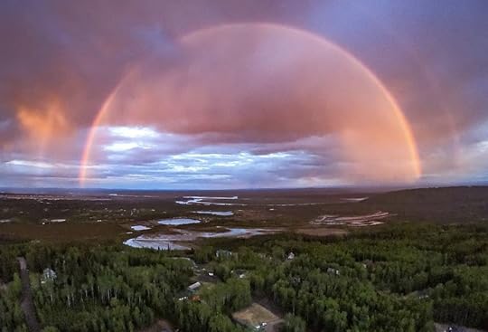 So, sunset rainbows are a thing. This was taken at 11:30 PM outside Fairbanks, Alaska.