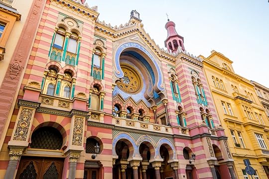 Despite being sandwiched between banana-yellow and creamsicle-colored buildings, the Jubilee Synagogue is the only thing you see when you walk down Jerusalem Street. Its red-and-gold-striped facade is complemented by splashes of color, such as the periwinkle accent that surrounds the focal rosette window and Star of David. Wilhelm Stiassny designed the synagogue in 1906 in the Moorish Revival Style, adding Art Nouveau touches like vine motifs and wrought light fixtures. Stiassny named the holy site in honor of Emperor Franz Joseph I of Austria’s silver jubilee. Prague’s youngest synagogue, Jubilee synagogue is also one of the most important Jewish landmarks in Prague. It welcomes worshippers year-round and visitors every day, except Saturdays and Jewish holidays between April and October.