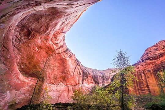 After a very chatty hike to the gulch, we arrive at its mouth and stand minuscule before the towering orange and red walls.