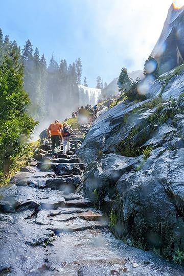 A bus ride takes us to the Vernal Fall and Nevada Fall Trails. Although some could be deterred because of the trail's moderate to strenuous nature, the views at the end are worth the price. Three different main overlooks reside along the trail, giving visitors the opportunity to choose their own distance. After 400 feet of altitude gain and only .8 miles into the hike (1.6 miles round trip), a sturdy footbridge extends across the river, filled with photographers snapping shots of the distant Vernal Falls.