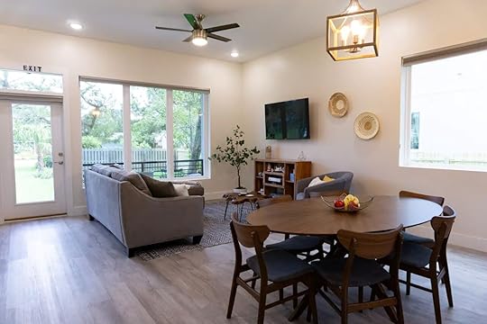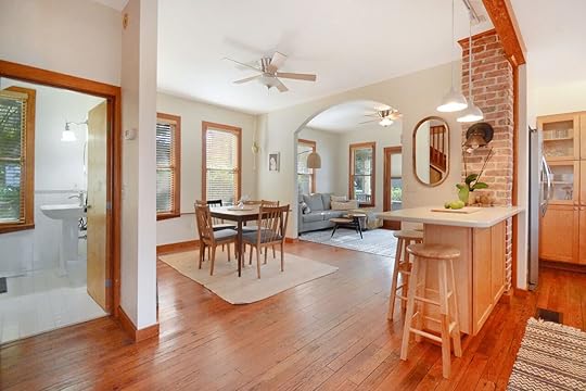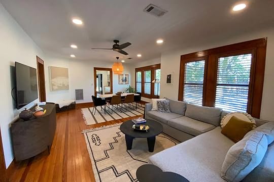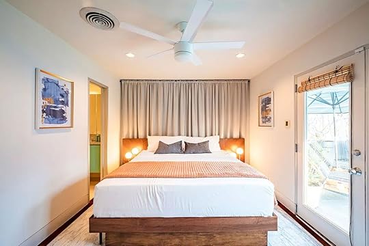 See more photosThe back of this apartment Airbnb near downtown features a private courtyard, perfect for enjoying a cup of coffee in the morning or a glass of wine in the evening. The layout is open-concept on the first floor, boasting plenty of natural light thanks to numerous windows. This level includes the living room, dining room, kitchen, and a downstairs bathroom. Upstairs, you’ll find two bedrooms and a bathroom, with the latter being connected to the master bedroom. The bedrooms are designed for relaxation and simplicity, providing a tranquil space to unwind during your stay.