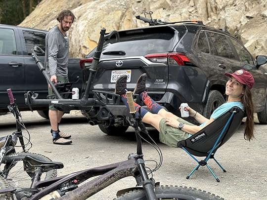 But I’ve had it now for about a year and actually do get tons of use out of it — not for backpacking, but for socializing after outdoor activities. Mountain biking is usually my go-to activity, and after a few hours of sweaty pedaling, it’s nice to sit and chill for a few minutes (or longer) before you peel off your smelly knee pads and load your bike back onto the car. And this is where the Helinox Zero really shines. Because it’s so narrow (about the thickness of a Nalgene water bottle), it’s easy to keep in my plastic bin of bike gear I haul in and out of the car each time. And when my legs are sore and fatigued, sitting in an actual chair feels downright luxurious, even if the chair itself is pretty basic. If we’re going to be hanging out in the parking lot for more than three or four minutes after a ride, I always set it up.