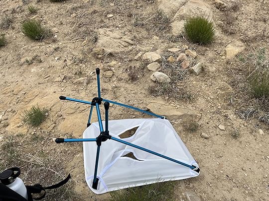I recently took it with me on a trip that required a 1,000-foot gain from trailhead to end point. As seen in the photos here, the chair fit well into my 30-liter pack. I’ve never brought an actual chair with me into the backcountry before, only one of those stoop-like seats, but after doing this once, I will do it over and over again. Besides its portability, the Helinox Zero chair excels at self-righteousness. By this I’m referring to its ability to remain right-side-up and stable even on less-than-flat surfaces (see the photo of me in the collage above), which are common at trailhead parking lots and campsites. I’ve popped the chair open and assembled it (in less than a minute) in a variety of such settings. As Suzie notes, you’re not going to rock yourself to sleep in this chair, but it’s supportive, easy on the back, and never leaves me feeling like I’m about to tip over – a common issue with traditional camp chairs.