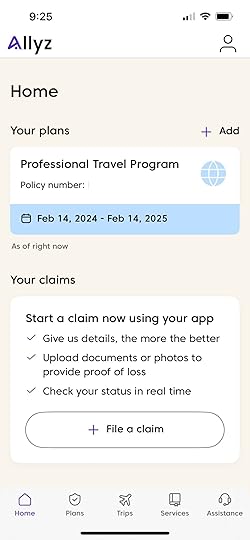 Allyz TravelSmart app/ScreenshotAfter downloading the app from the Apple App Store or Google Play, I was prompted to create a new account. Once doing so, I logged in to find that the app had already located my policy and integrated it into the app. The option to start a claim is right there on the homescreen. For the purpose of this article, I went through the claims application process to experience what it’s like.