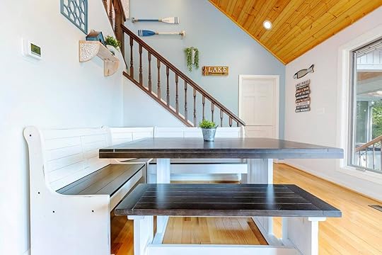 This four-bedroom, three-bath cottage is on the edge of Boone Lake, a popular destination for fishing, boating, and other water-based recreation activities. The house has great outdoor living spaces, including a screened-in dining area, patio, and a hammock, where you can relax and enjoy the peaceful lakeside location.