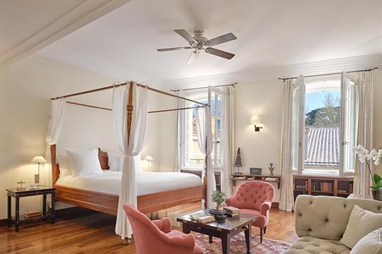Entry-level rooms at Pan Deï Palais are bathed in natural light and accented with sculpted paneling and Indian artworks. The French General Jean-François Allard commissioned the townhouse for his wife, Bannu Pan Deï, a princess from Himachal Pradesh. After falling in love, the couple relocated to the south of France and made this picturesque mansion their family home. The Indian furnishings remain as an homage to their romance contrast yet complement the French Riviera setting.
