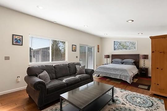 See more photosThis marijuana-friendly cottage is in the backyard of the homeowner’s residence. The lawn, gazebo, and fire pit are technically shared although guests have priority. In place of a morning pancake stack, the host provides complimentary flower and edibles. Dogs are welcome to stay and can enjoy a game of chase with the resident pooch. It’s pretty roomy for a studio unit with a separate seating area and a decent kitchen.