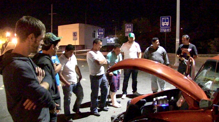 Cruising around town looking for grub with a Guatemalan mechanic.