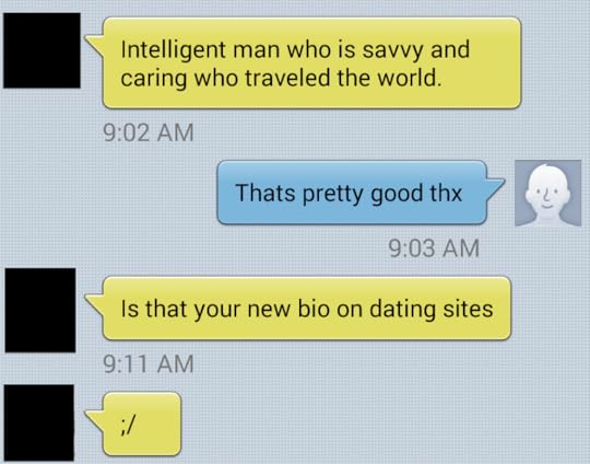 Anyway, I was so impressed with these thoughtful answers that I started thinking how valuable it would be to collect responses from the other set of exes. The ones that I don’t talk to, where things ended badly, or I still say “Fuck that guy” every time his name comes up in conversation. Since we’re not friends and they don’t have a reason to protect my feelings, wouldn’t their analysis be even more useful in trying to find a mate?
