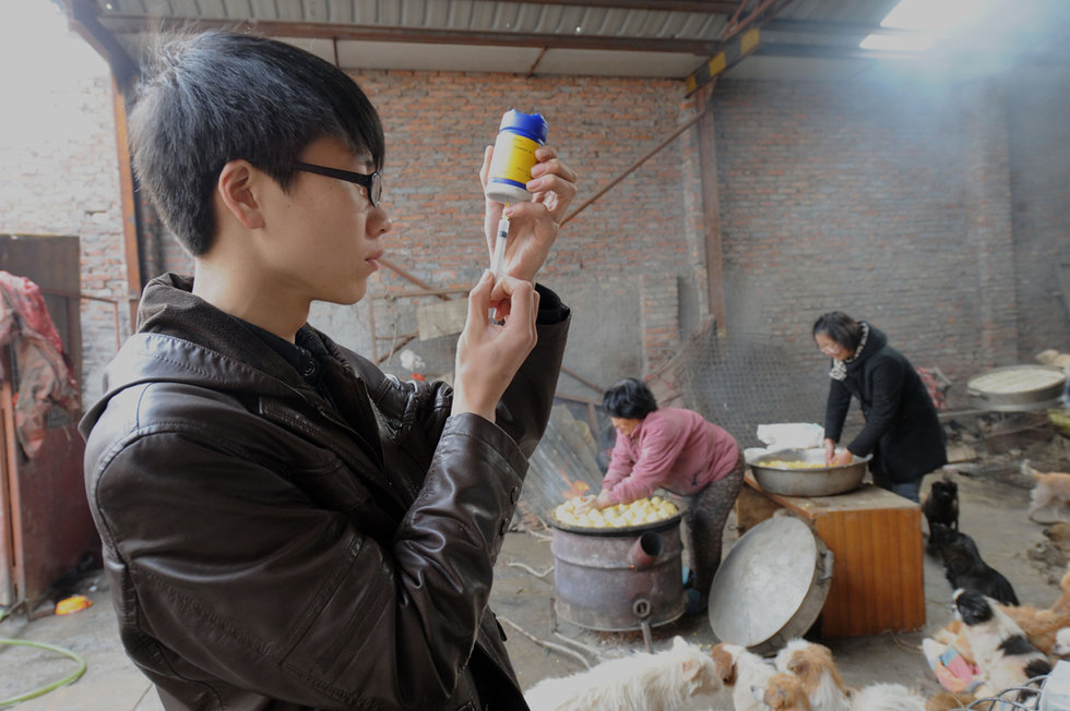 Yang personally oversees the care of more than 200 cats and 1000 dogs that live in ‘Common Home’, including administering meds to the disabled and sick animals (which outnumber the healthy).
