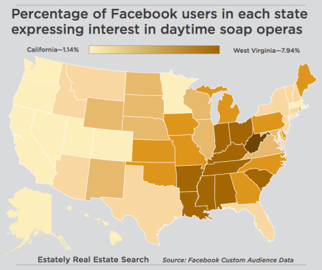 Estately used Facebook trends, Yellow pages listings, Google and Gallup analytics, and American Time User Surveys to assess the ‘states based on the following parameters: