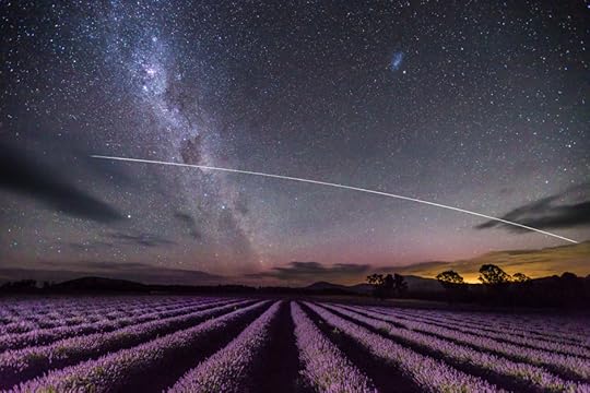 The international space station is seen flying across Bridestowe Estate's Lavender fields located in the central east region of Tasmania.