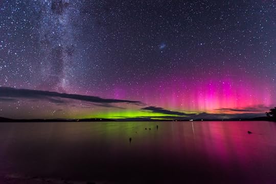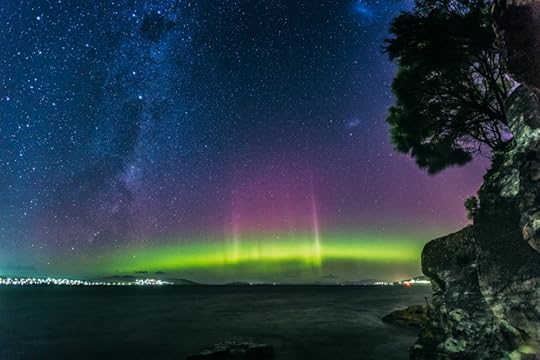 Aurora Australis light up over Mortimer Bay in southern Tasmania.