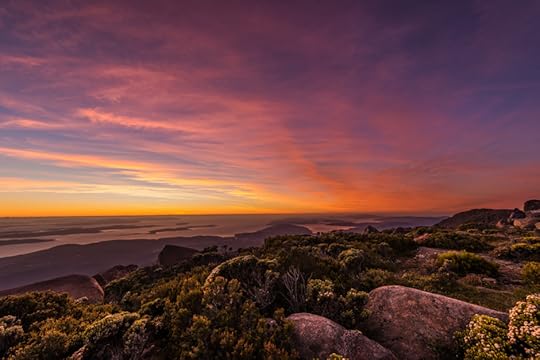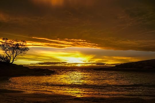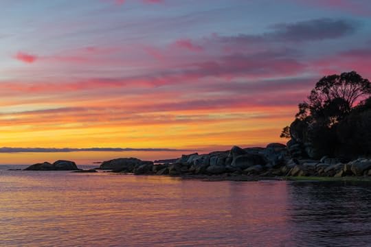 Sunset over Honeymoon Bay in Freycinet National Park on Tasmania's East Coast.