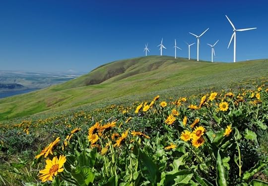 Balsamroot and wind turbines at Windy Flats wind farm, Haystack Butte