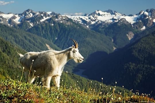 The Olympic Mountains actually have their origin out in the Pacific Ocean. As the Pacific's oceanic plate slides under the North American continental plate, ocean floor sediments get scraped up and heaped onto the edge of the continental plate, forming hills and mountain ranges called an "accretionary wedge." Here, a mountain goat high up on the Bailey Range overlooks some of the range.