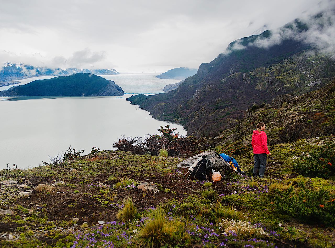 Early that evening, we reach Refugio Grey and set up our tent on the adjacent campgrounds. Without the burden of our packs, we trail-run 20 minutes north to inspect the glacier up close. This final sprint of endurance is contrasted by the immense stillness and grandeur of the Grey Glacier before us.