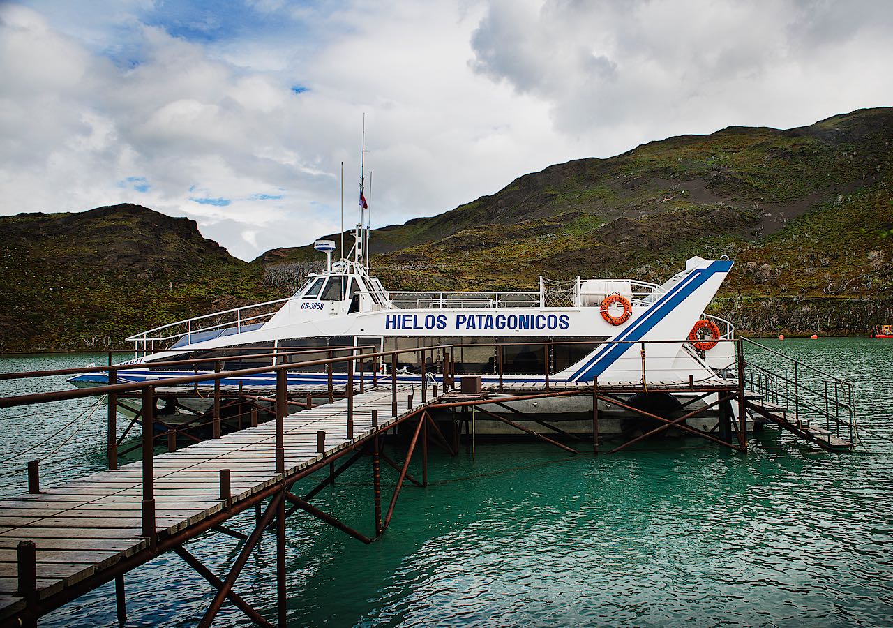 Our Catamaran docked in the turquoise glacier waters right before taking us across Lago Pehoé, to the official entrance to the park.