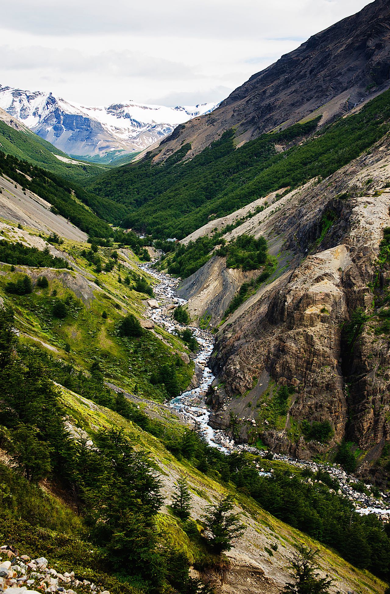 Once we drop off our gear and set up camp, we start our ascent into the Valle del Francés, the middle leg of the W. Much of the terrain and flora found in this part of the trail is similar to that of the Pacific Northwest. Trekking poles prove to be pivotal in maintaining balance as we hop from rock to rock, crossing multiple rivers. While you may never quite have to rock scramble, this leg of the trail may be the closest you come to it. You will need to use your hands to hoist yourself over rocks or to maintain balance, while granny-stepping along ledges.
