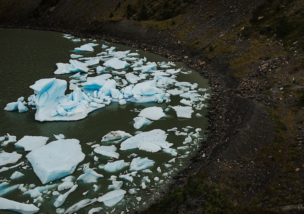 After landing on the opposite shore, full of energy and optimism, we set out for the Grey Glacier. The first hour or so of this trail is fairly flat, but as the walk progresses, it fluctuates in elevation along a rocky ridge that contours Lago Grey. This leg should only take about four hours, and about halfway in — if it is not too windy — you can walk out onto a ledge at the Mirador Grey, where you’ll see the glacier looming at the north shore of the lake. The Grey Glacier is part of the Southern Patagonian Ice Field, which runs along the southern Andes, between Argentina and Chile. It’s the third largest ice sheet in the world, after Antarctica and Greenland, and during the last glacial period it covered all of southern Chile. While I am perched out on the mirador, marvelling at this thought, a belligerent thrust of wind knocks me down. The unrelenting winds in Patagonia are notoriously dangerous, known to top even 180 km/h. Sadly, according to a local guide, there were five deaths along the W circuit in 2012. If a strong wind picks up at the wrong moment, it can kick you off the mountain.