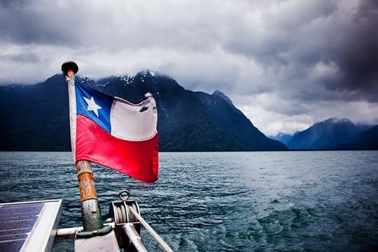 The view south-east over Reloncaví Sound. In the distance are the granite hulks of Cochamó Valley. Its immense walls are legendary in rock climbing circles worldwide and have earned it the moniker 'The Yosemite of South America'.