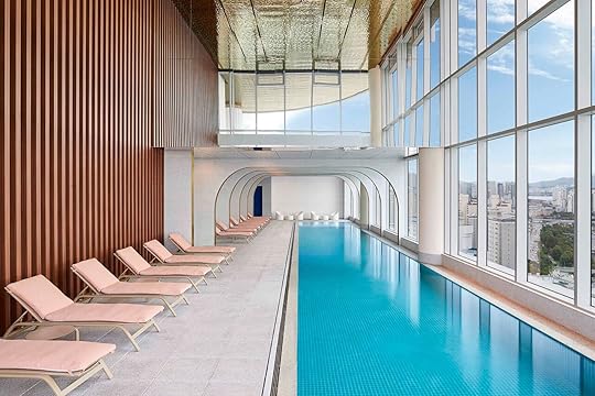 There are two swimming pools, including an outdoor infinity pool and an indoor swimming pool, and a well-equipped fitness center with a sauna. The restaurant serves various international, Korean and Chinese dishes, and there are three bars on-site — including a rooftop bar with impressive views.