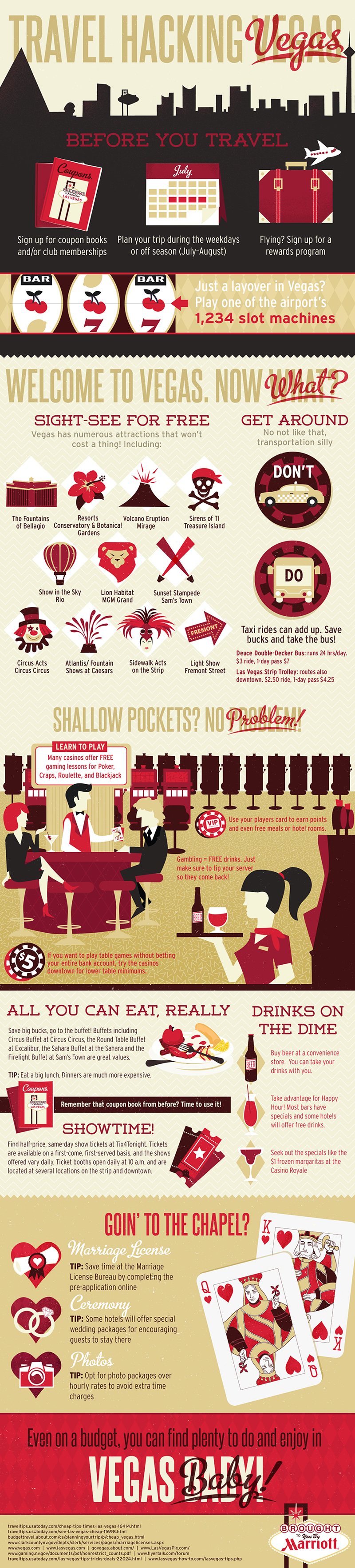 MY FIANCE WANTS his bachelor party to take place in Vegas (thanks, Hangover…). I’m not a huge fan of the city myself, so I can’t really help him plan anything good, but this infographic pretty much provides the perfect amount of information a first-timer, or even a Vegas veteran, could benefit from. The next time I am in this city, I’ll be sure to make use of the $1 frozen Margaritas at Casino Royale.