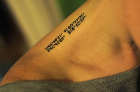 Along with majoring in geography at university, I also specialized in GIS (geographic information systems). This meant a lot of time with digital mapping software, GPS devices, and a big focus on learning how to properly use coordinates. So it was only natural that I'd want to get coordinates permanently embedded on my body. I chose the coordinates to the house I grew up in and still consider my home, as well as the coordinates of the first place I ever visited outside North America, which was southern Italy. These coordinates were positioned on the top of my right shoulder at Dawg Pound Tattoo in Niagara Falls, ON.