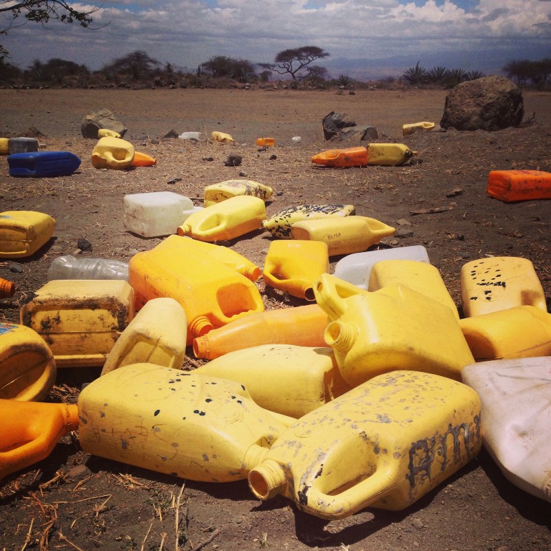 Dozens of abandoned jerrycans in Ngarenanyuki ward, Tanzania. Photo: Mary Slosson