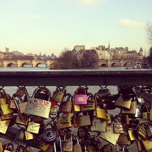 I crossed the Pont-des-Arts (“the lover’s bridge”) last evening, with the intention of getting to the other side as quickly as possible, to avoid being asked to take a photo of some posing couple. But I stopped in my tracks when I noticed the color that the Seine had taken on at that time, right after the last yellows of sunset. It was a precarious blue, the kind you would only find in a Monet. The blue softened the reflections of the city’s lights, making them look not like reflections but like living things just under the water’s surface. I thought, how nice it would be if someone (preferably attractive, with teeth and a clean mental health record) were to stand next to me and share this vista.
