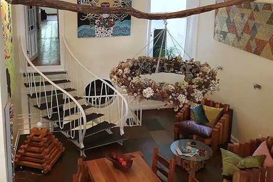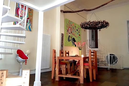 See more photosThis experimental apartment occupies three levels of an Art Nouveau home. All spaces are ornamented with murals, floral displays, and boho trinkets while the first floor is a dedicated art and play zone. The lemon-colored kitchen is a joy to cook in and the beds are unmatched for comfort. Choose this Uhlenhorst rental if you want to be close to St. Georg and the lakes.