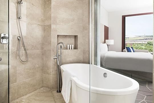 The rooms at the hotel feel clean, spacious, and contemporary (some rooms are perched at exactly 5,280 feet above sea level on the “Mile High Floor,” a nod to the equally-elevated Purple Row of seats at the stadium) and feature curated art, distinct furniture and furnishings, and comfortable beds.