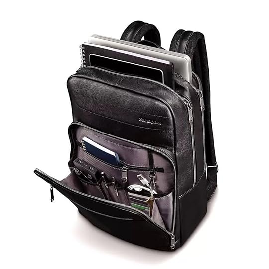 Details: Laptop compartment: Fits up to a 14-inch laptop. Materials: Grain leather. Padded laptop compartment. Main compartment with multiple pockets. External water bottle pockets. SmartSleeve for easy attachment to rolling luggage. Adjustable shoulder straps. Carrying handle