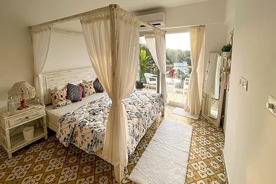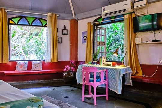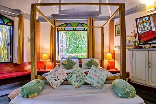 See more photosThis charming space inspires a tranquil state of meditation and mental clarity. It was purposefully built in a hexagonal style and surrounded on each side by old Goan-style stained glass windows that feature a view of the garden. It’s located just off the main Calangute-Baga road, just a few minutes from the bustle of city life, but tucked away to offer a sense of peace. Be sure to spend time in the garden listening to the bamboo rustle and admiring the wide range of bird species. Rest in the four-poster bed covered in bright pillows and bathed in the sunlight from outside, and soak up the lush atmosphere felt throughout the property.