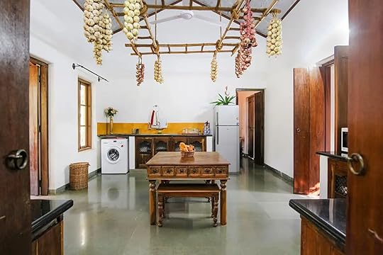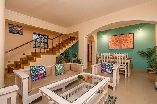 See more photosThis spacious villa is nestled between Assagaon and Anjuna, which are said to be considered two of the most upscale districts of Goa. The property features modern amenities and contemporary design elements, with Portuguese architecture including gorgeous, detailed tile work and amenities that go above and beyond what’s needed to enjoy an exceptional stay. There’s an open floor plan made to create a sense of community. The beautiful kitchen was made for creating lavish and delicious meals, equipped with modern appliances. The sunroof over the dining room illuminates the dining room table, which is a work of art in itself, made with 10-foot wooden logs. The garden and outdoor space yard feel perfectly zen and well-suited for relaxing. There are three bedrooms on the ground floor and one more on the upper floor — each with its own bathroom. Finally, the terrace is the best place to watch the moon light up the sky or stargaze in the evenings.