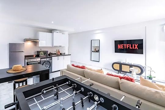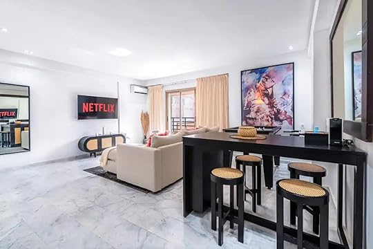See more photosThis luxurious apartment offers the convenience of being located in a prime city spot while feeling like an upscale and contemporary escape from the urban chaos. There are many shops and restaurants easily accessible from the apartment on foot, and the train station is just a few streets away. The bright and sunny apartment is decorated in a clean palette of whites, tans, and creams complemented by bright touches of color in the wall decor and pillows. Additional amenities that add a touch of comfort include air conditioning and a large TV with streaming services.