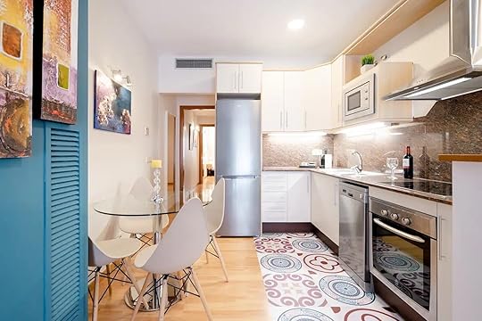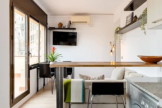 Located on the top floor of its apartment building — don’t worry, there are elevators — this two-bedroom Airbnb almost makes you feel like you’re staying inside La Sagrada Família, especially from the rooftop terrace. The unit has a minimalist style that was chosen to accentuate the apartment’s natural light, which makes the cozy open living room and kitchen area feel more spacious. Adjoining the living area, guests have direct access to the terrace which has a table and chairs, perfect for moments of relaxation.
